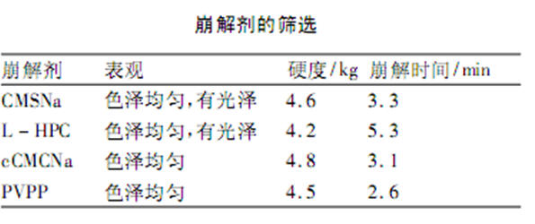 在相同用量条件下,不同崩解剂(PVPP, CMS-Na, L-HPC, CCMC-Na)对芪天分散片崩解时间的影响。